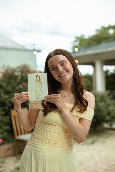 Not at all! In fact, I prefer them to stand because it lets me capture more of their outfits! Guests can step aside for a quick photo and continue enjoying the event or stand there and watch their watercolor come to life. They can come back in 20 minutes once the ink has dried to retrieve their finished portrait, wrapped in a protective plastic sleeve.
