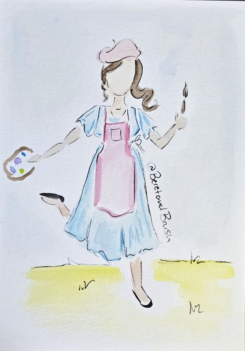 My portraits aren’t about speed, perfection, or capturing a perfect likeness. They’re quick, stylish outlines — head to knees — sketched in watercolor and ink, with just enough shape and movement to capture someone’s vibe. A great outfit. A confident stance. A little sassy hip movement in their posture.