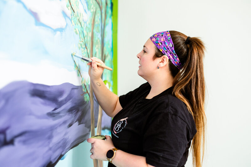 I’ve never been good at sitting still — especially when I’m near a blank wall! My brain overflows with color, contrast, and an itch to break out my brushes. I see walls as giant invitations to spark curiosity, start conversations, and celebrate the stories that live in a space.