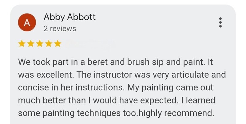 "A fun and creative experience. The artist was very interested in inspiring creativity as well and helping people reach their own potential in a low pressure situation. Will definitely continue to recommend her events to friends and family in the future."